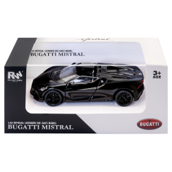 DIE-CAST kovový model auta angličák BUGATTI MISTRAL. Délka 10,5 cm. Oficiální licence. Věrná kopie interiéru, otevírací dveře, gumové pneumatiky, kola s volným pohybem. Vhodné pro kluky od 3 do 99 let.