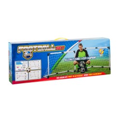 Možno sestavit 2 branky 94x66x65 cm nebo 1 branku 185x122x66. Průměr trubek 40 mm, odolný plast. Součástí balení je síť, míč, pumpička a ukotvovací kolíky. Kompletní popis